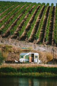 The Trailer Pond is more of a camping/glamping experience, where as they put it so well "you step into a time machine and get transported back to the 1950’s and 60’s when life was simpler!". You get to stay in a beautifully restored trailer deep in the valley of their winery around a beautiful pond and sweeping views of the vineyard! The trailer does not have any modern amenities like air conditioning or heat, but they do come equipped with a small fridge inside.